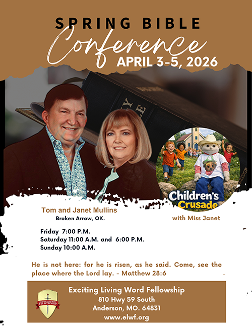 ELWF Services are available on Facebook, YouTube Live, and Rumble. Also available as archives on Facebook, YouTube, and Rumble. Join us each Sunday morning at 10:00 am and Sunday evening at 6:00 pm (CST) to view our Morning and Evening Worship services. Also, join us Wednesday evening at 6:30 pm (CST) to view our Wednesday Worship service.