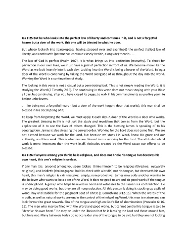 Jas 1:25 But he who looks into the perfect law of liberty and continues in it, and is not a forgetful