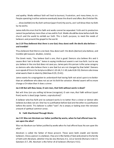 and apathy. Works without faith will lead to burnout, frustration, and many times, to sin.