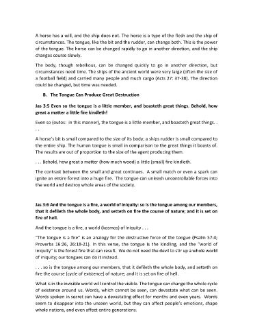 ignite an entire forest into a huge fire.  The tongue can unleash uncontrollable forces into