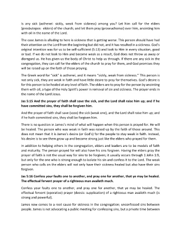 James now comes to a root cause for sickness in the congregation; unconfessed sins between